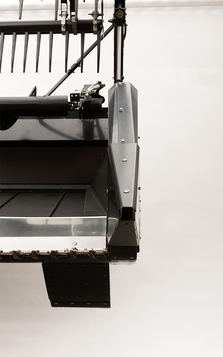 A new 5” design replaces the 8”. The thinner end shield and crop divider design reduces flattening of crop and enhances manoeuverability along field borders and through row crops.