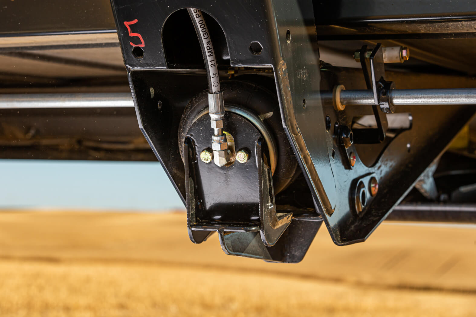 A new design applies a consistent force from the airbag to the cutterbar, allowing for better floatation throughout the full flex range and reducing wear along the cutterbar and skid shoes.